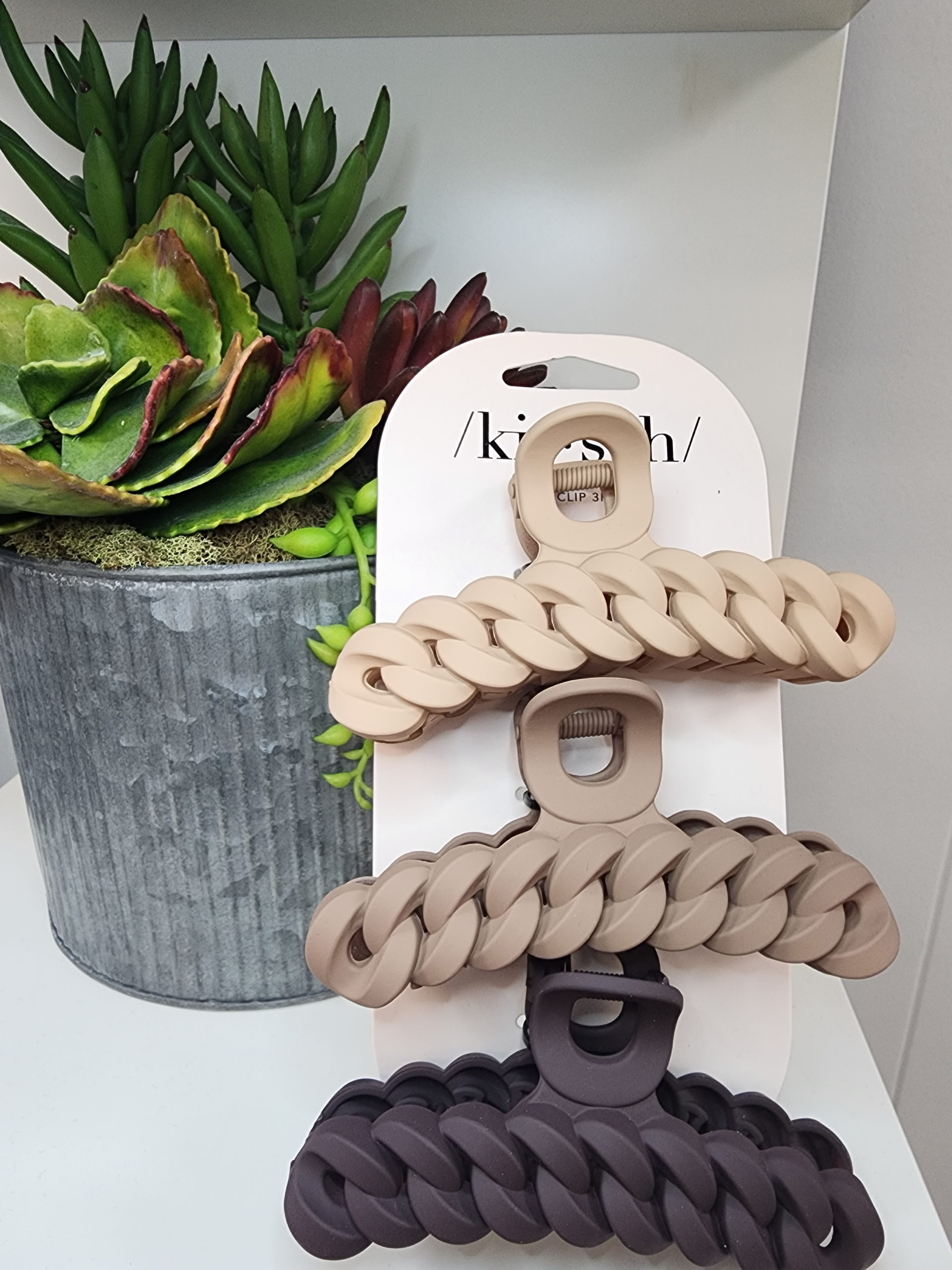 Kitsch chain claw clips. Set of 3 in tan, nude and brown